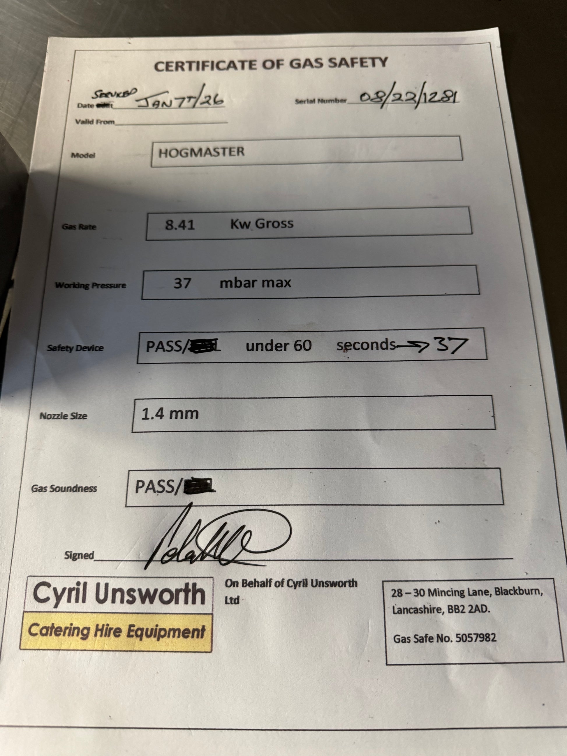 New handles and castor wheels, machine has a few cosmetic marks and the lid is slightly bowed due to heat & previous use but in no way affects the cooking capabilities of the unit.